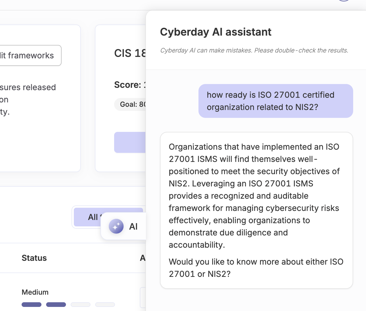 During the summer, we’ve focused heavily on expanding Cyberday’s framework coverage. We recently released new national implementations of the EU NIS2 directive, bringing our total to 20 NIS2 versions, along with a new frameworks for local markets. We are already covering 50+ frameworks, and will continue publishing new ones based on customer wishes.