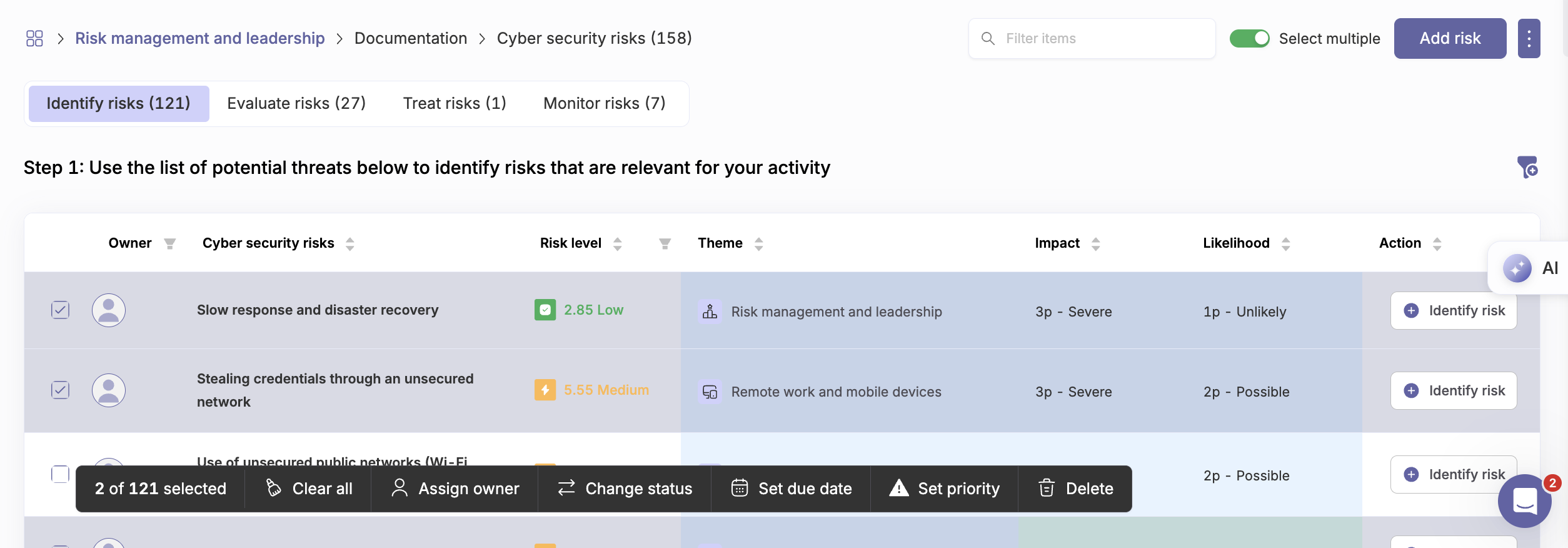 AI Assistant is active on your account by default, but it can be disabled from whole organization through settings. AI Assistant won’t use your ISMS data for anything or make changes without your request.