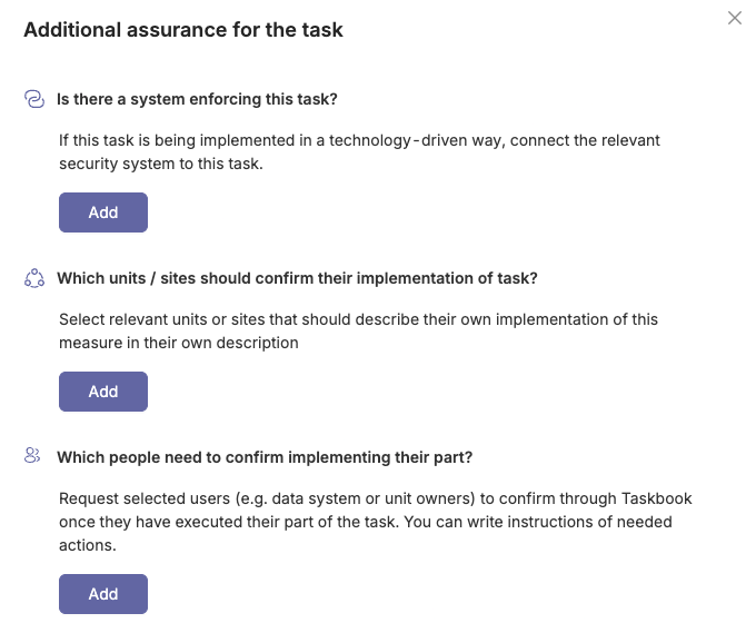 Under the link "Additional assurance information" in the bottom of the task card, you can find a list of other assurance options that you can add to your task. This can mean either the