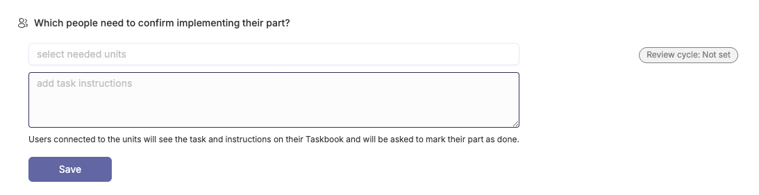You will need to pick relevant units or sites who need to write their own description for the task. Unit / task owner will be responsible for creating the requested description.
