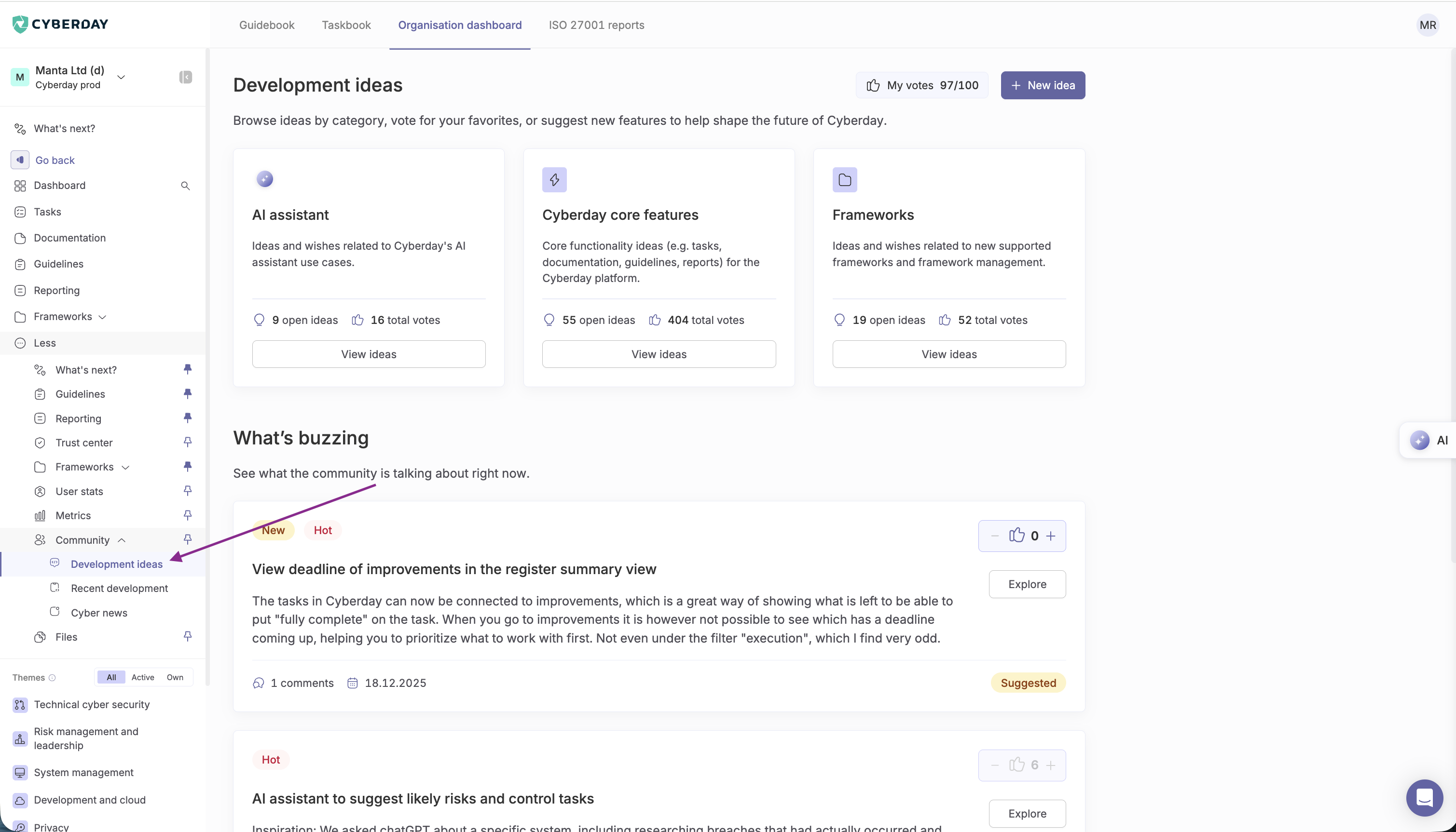 This development ideas board, found in the Community section has always been a good place to share your ideas of improving the Cyberday app with other people in the community and our team as well. But now it has gotten better!
